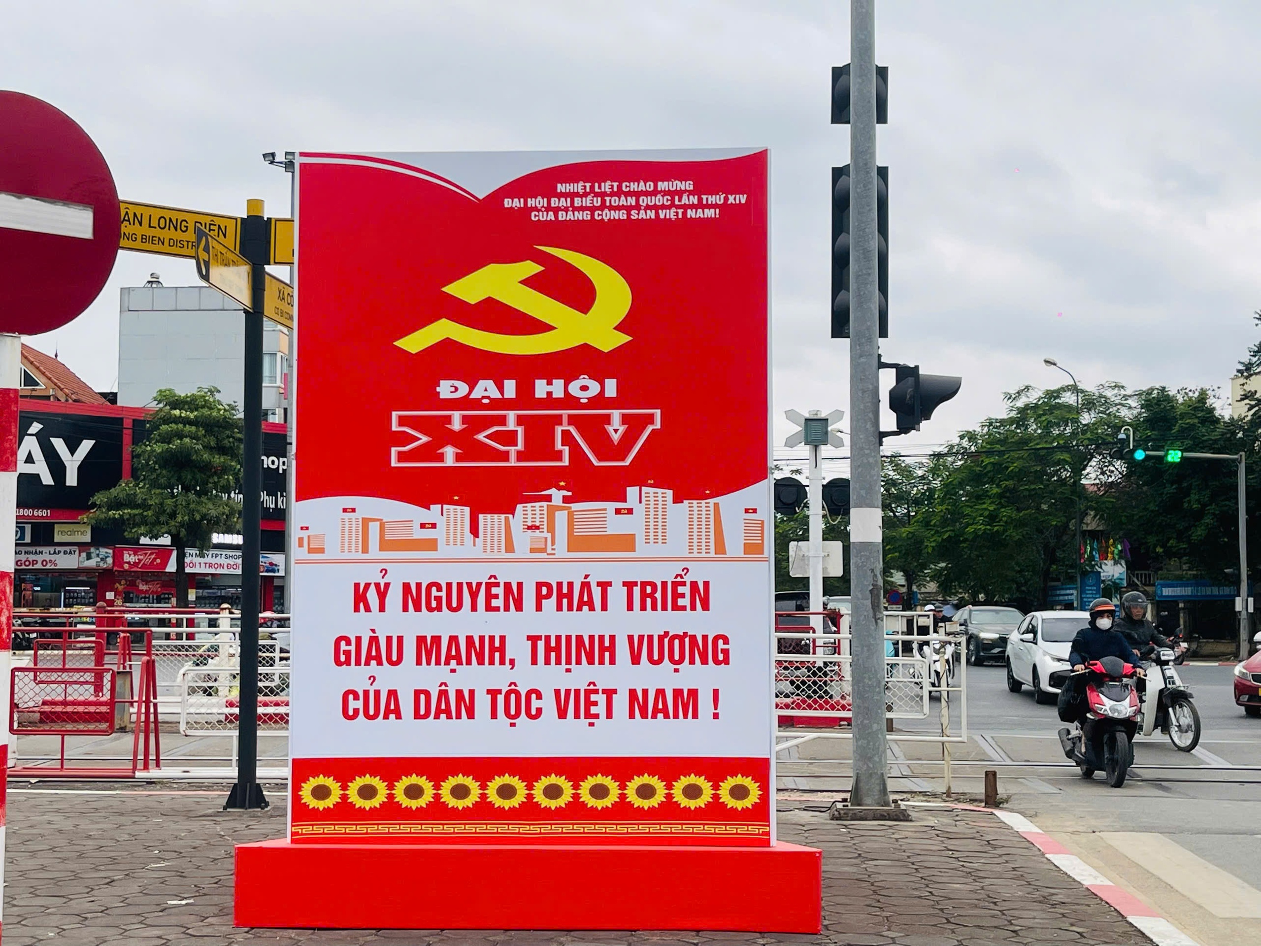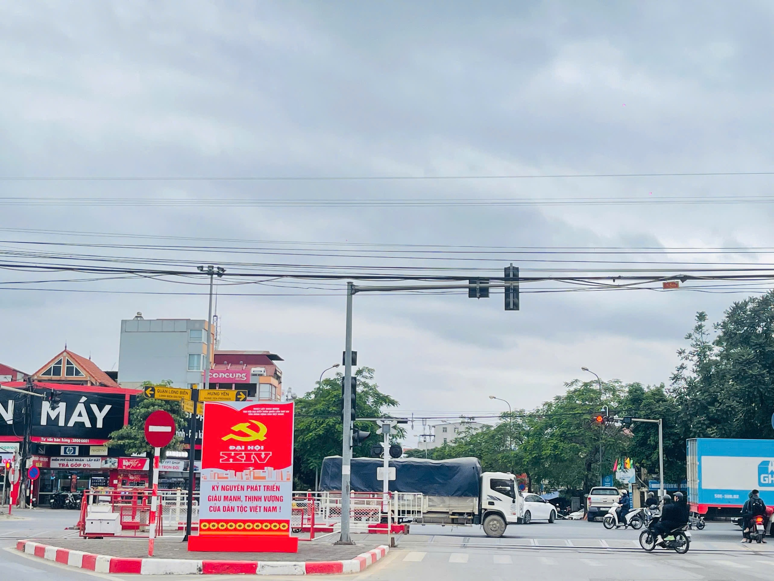 Cum pano tuyên truyền đặt tại ngã tư Trâu Quỳ